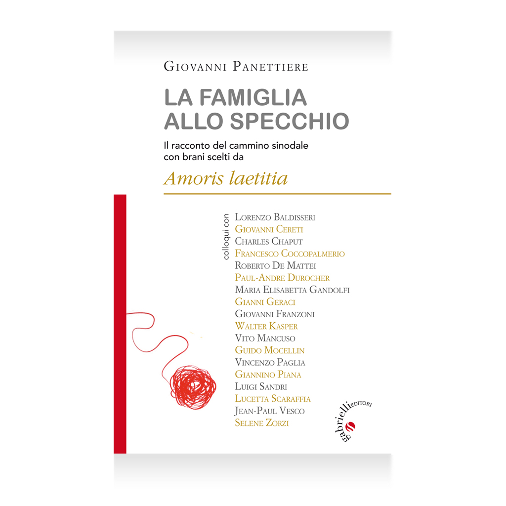 La famiglia allo specchio. Il racconto del cammino sinodale con brani scelti da Amoris laetitia del giornalista Giovanni Panettiere (Gabrielli 2016) è il primo volume dalla pubblicazione della recente esortazione apostolica postsinodale di papa Francesco a raccontare passo dopo passo il doppio Sinodo sulla famiglia (2014-2015). Il giornalista Giovanni Panettiere ripercorre e approfondisce un evento di livello mondiale, raccontando gli schieramenti, i retroscena, le svolte, i documenti, compresa l’Amoris laetitia, attraverso analisi e interviste a protagonisti, teologi e saggisti. Tra gli intervistati i cardinali Lorenzo Baldisseri, Francesco Coccopalmerio e Walter Kasper, oltre a figure di spicco del mondo cattolico come don Giovanni Cereti, Vito Mancuso, Giannino Piana, Lucetta Scaraffia e Selene Zorzi. Il libro illustra le scelte pastorali, all’insegna della misericordia e del discernimento, suggerite dal Sinodo e poi riprese e rafforzate dal Papa, su sfide delicate per la Chiesa come la comunione ai divorziati risposati, le convivenze, la genitorialità responsabile e l’omosessualità. Il tutto senza omettere le occasioni mancate di un percorso sinodale, partito dal basso, in cui la naturale dialettica tra le istanze dei presuli progressisti e quelle dei prelati conservatori ha trovato un terreno fertile e per certi versi irripetibile.